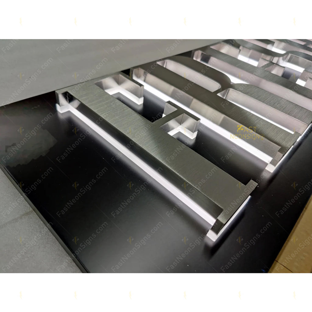 Our Custom 3D Metal Backlit Letter Signs are crafted from energy-saving materials, ensuring they are environmentally friendly, have low power consumption, and are both durable and visually appealing. Made from high-quality stainless steel, these signs are rust-proof and wear-resistant, maximizing their service life. The personalized custom logo signs feature an acrylic backing and energy-saving LED lights, providing a decorative embellishment to your space.