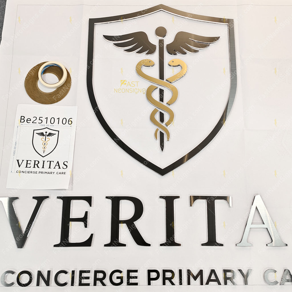 Elevate your business aesthetic with our Metal Backlit Sign. The fusion of frosted acrylic with a gold logo and mirrored letters exudes a sleek and contemporary allure, adding a touch of sophistication to your brand presentation.