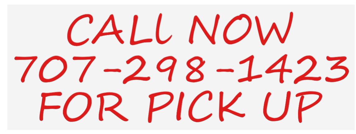 Text: CALl NOW 707-298-1423 FOR PICK UP