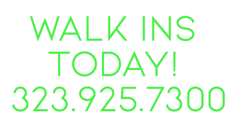 Text: Walk Ins Today! 323.925.7300